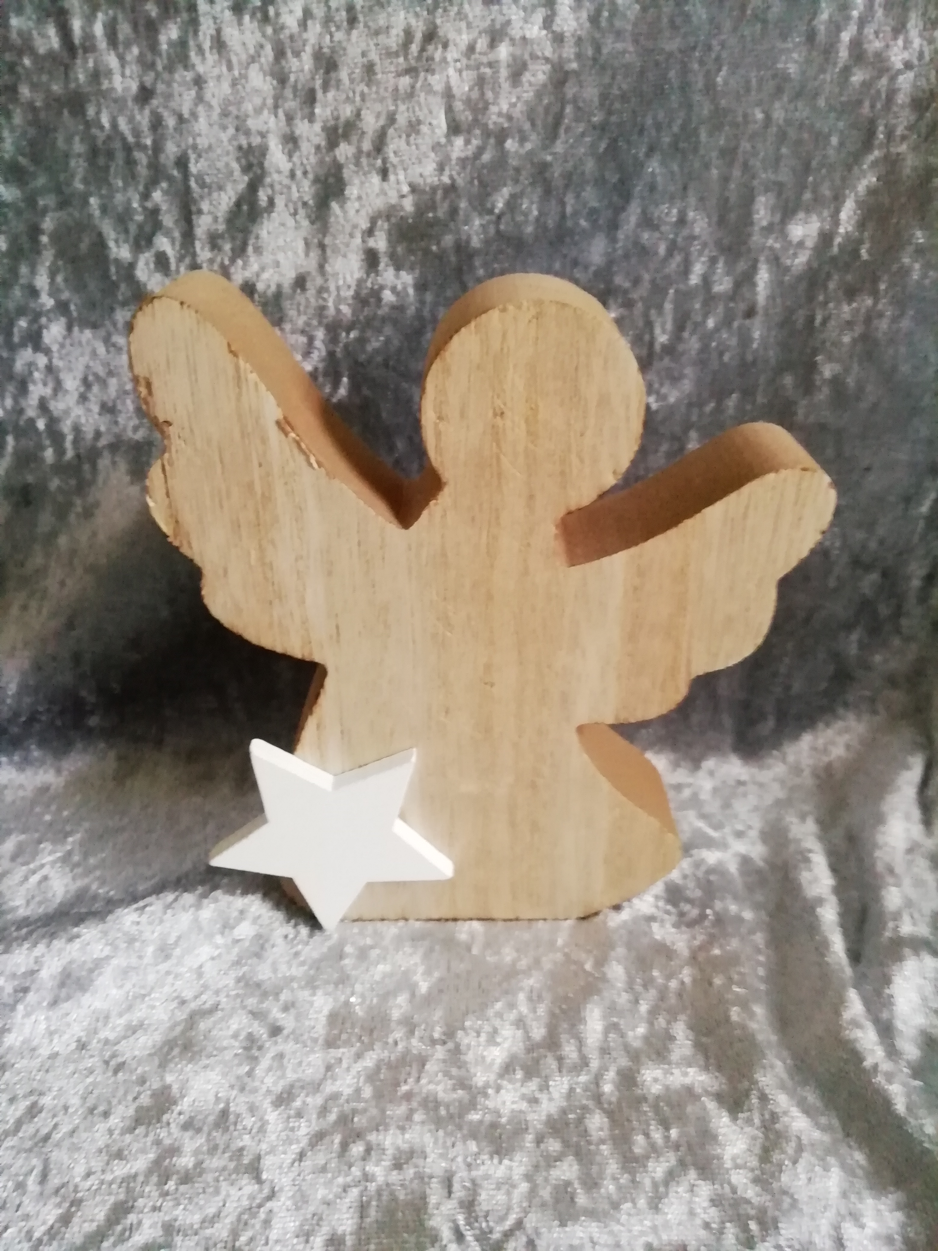Houten kerstengeltje met wit sterretje