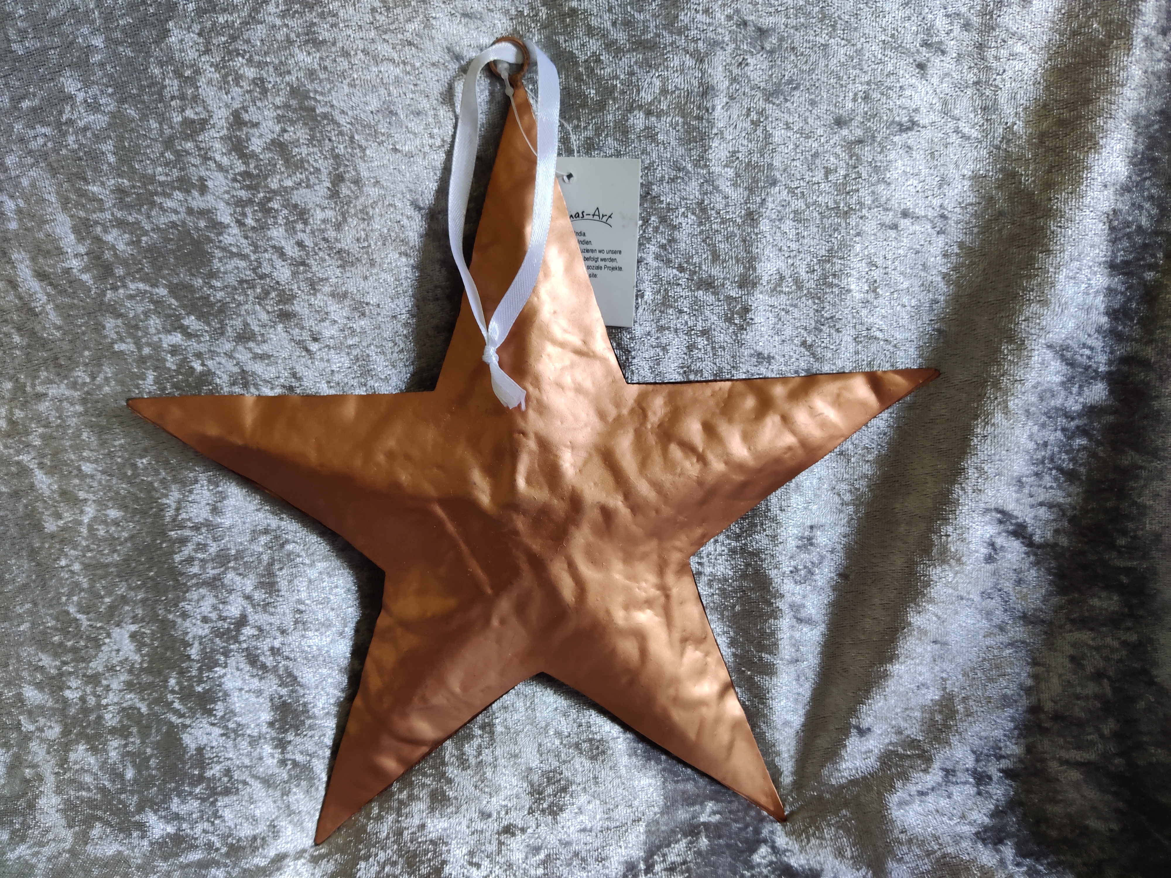 Metalen koperkleurige ster met lint om te hangen